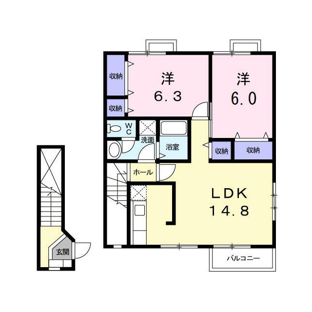 2LDK(洋6・洋6.3・LDK14.8) |
